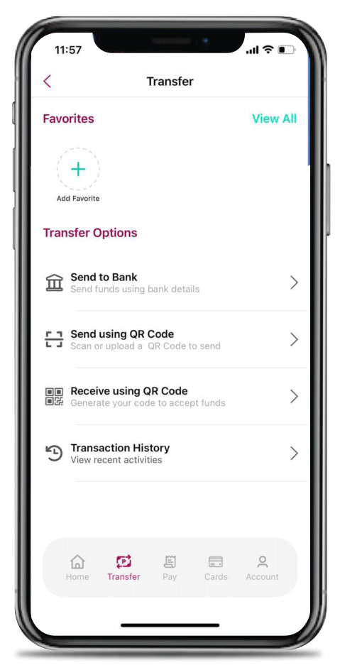 2. Select Transfer then choose Send to Bank